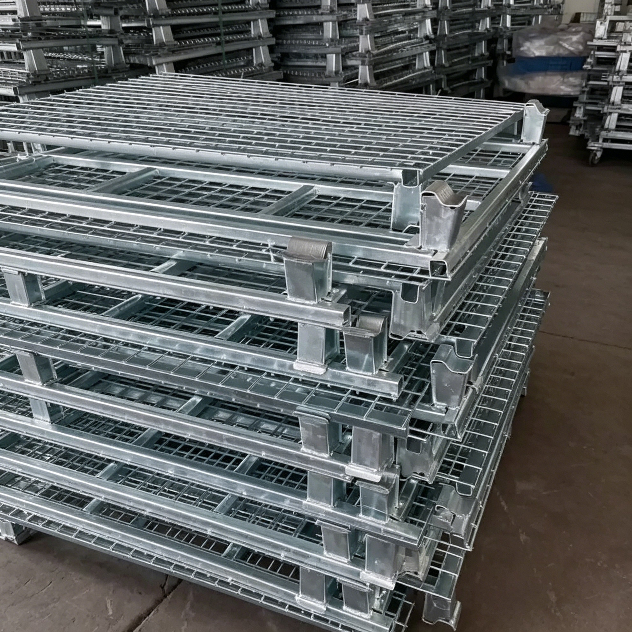 • بالنسبة للشحنات السائبة الثقيلة: اختر قفصات تخزين مقوية ثقيلة مع هيكل هيكل مقوى وقياس قطر الأسلاك الفولاذية ≥6 ملم.